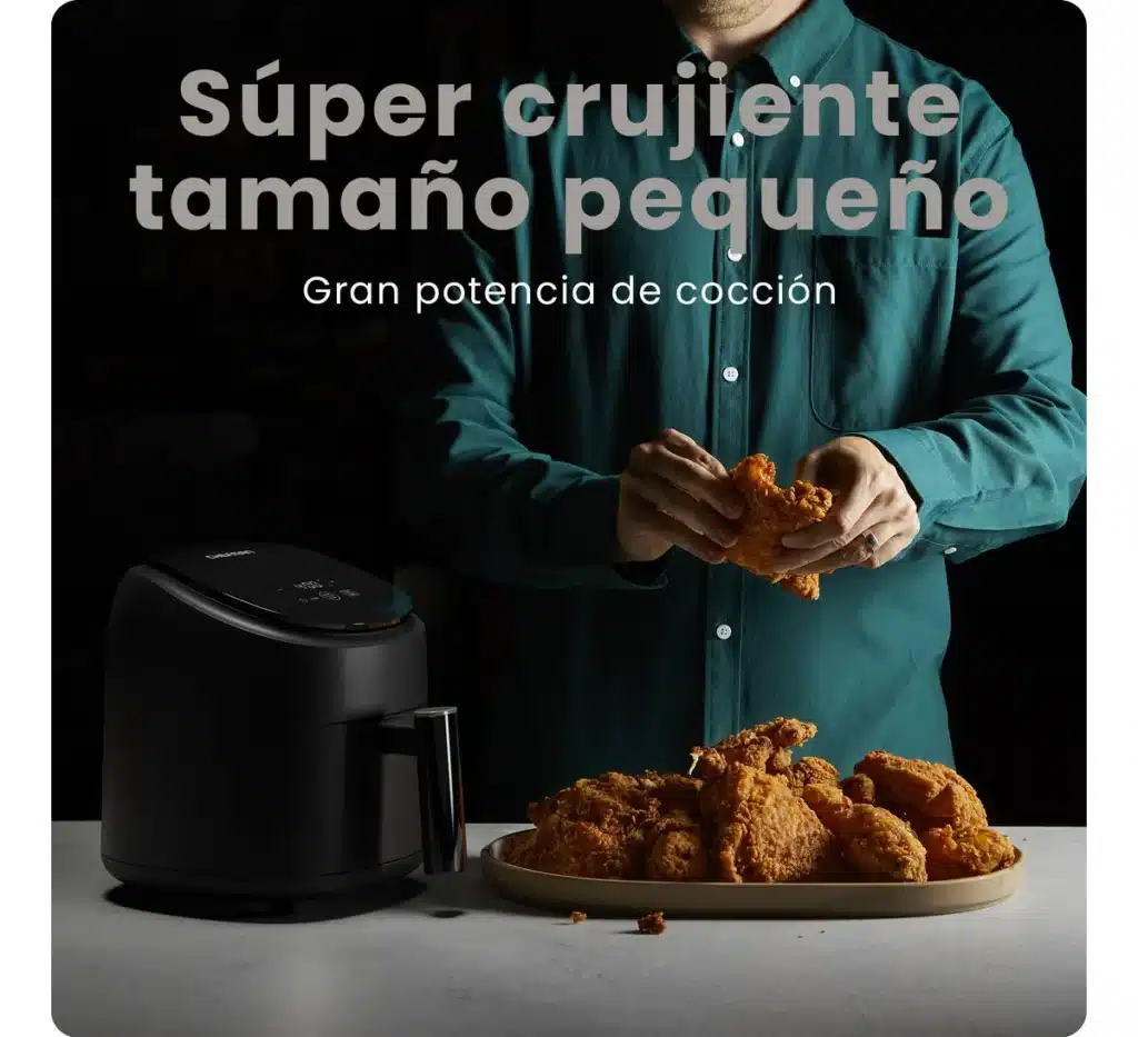 Te gustaría cocinar sin aceite y sin invertir mucho dinero en una freidora de aire, para ello te presentamos la Airfryer Digital Chefman RJ38-2D-BLACK-MX. Esta es la mejor airfryer barata, pero que funciona a la perfección, tiene una capacidad de 1.7L, lo que la hace compacta ideal si buscas freidoras de aire pequeñas para espacios reducidos, además se encuentra en excelentemente valorada en el mercado del 2026. Este modelo es una buena opción gracias a su sistema turbo fry y su hermoso diseño.